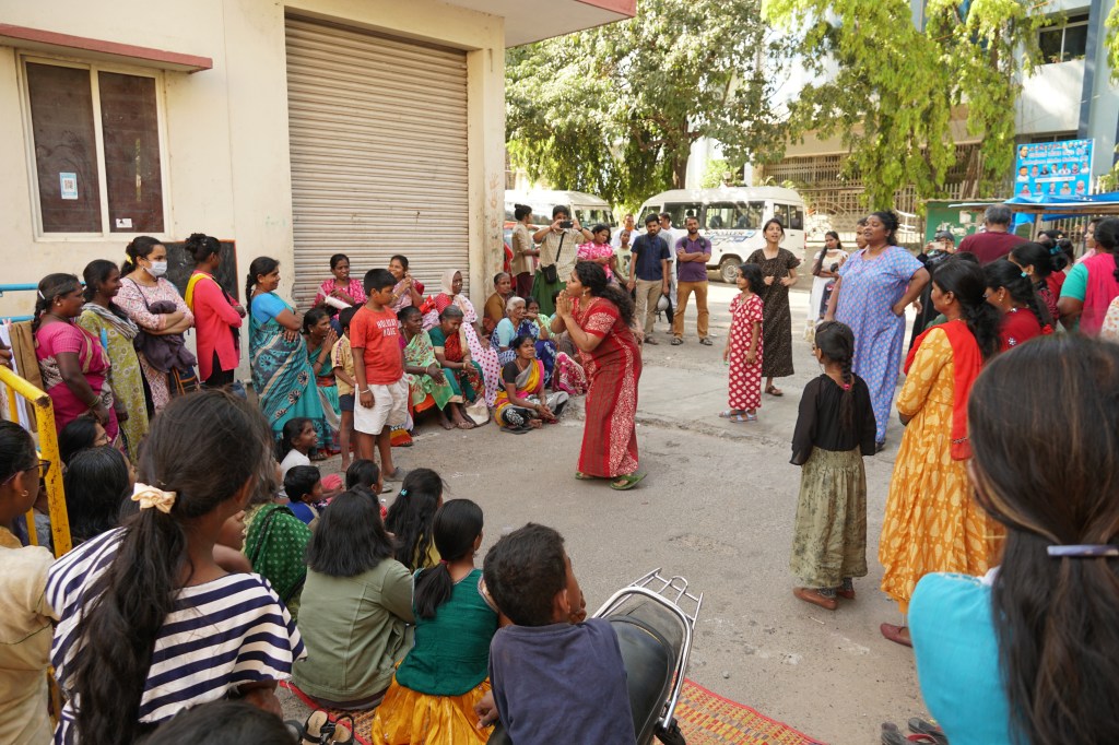 At one point, a social activist who has worked with this community pulled me aside and asked us to wrap up the play as people in this community do not have so much patience for a performance. She had worked with the community for a long time. At the end of the show, it was good to listen to her sing work songs and protest songs with the women in the community.