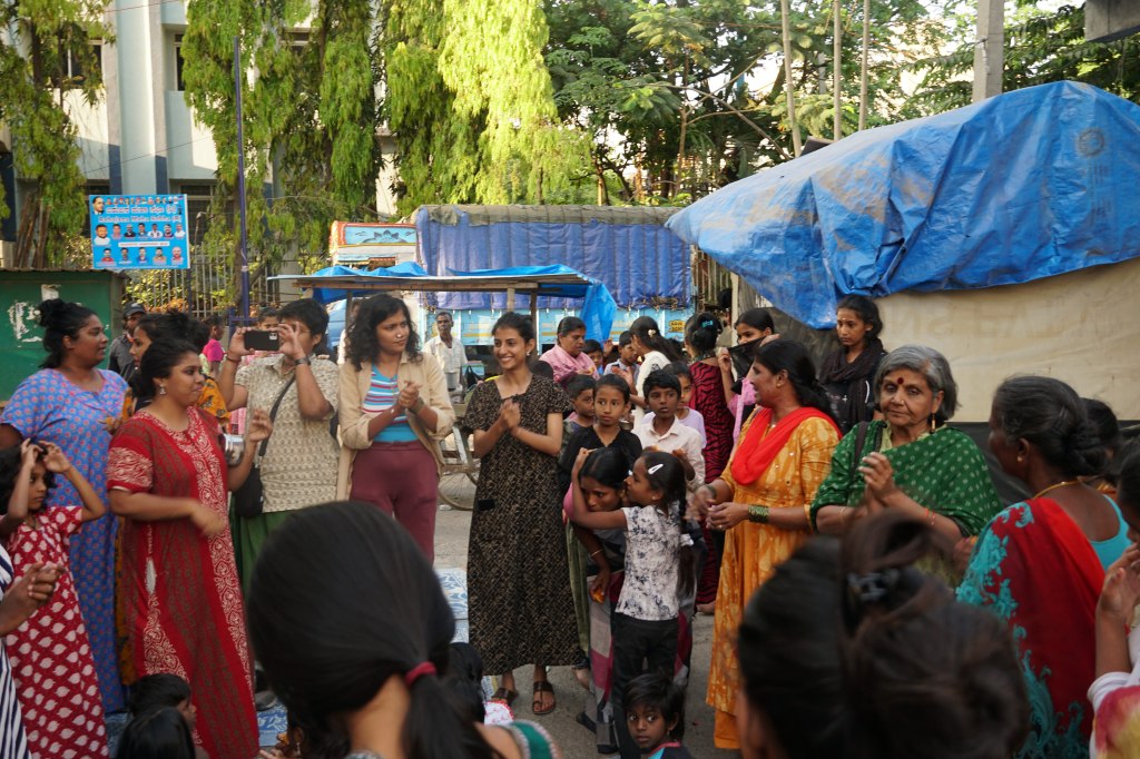 One of the performers and me, however, felt more at home in Arsu Colony. It felt like home. It felt familiar. Performing outside that temple on the middle of the road in the comraderie of all those women felt like the community we grew up in. Our hearts were filled with this.